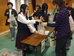 農場生産物として種まきから丹精込めて栽培したシクラメン・パンジー・葉ボタンなどの草花や寄せ植え生徒作品、ハクサイ・キャベツ・ダイコン・お米・柿などの太陽の恵み一杯の農産物に加えて瀬戸南名物のスモークチキンやローストチキンに瀬戸南オリジナルのシフォンケーキとおこわなど人気の商品が並びました。足下の悪い所をご来場下さいました地域や保護者の皆様に厚く御礼申し上げます。
