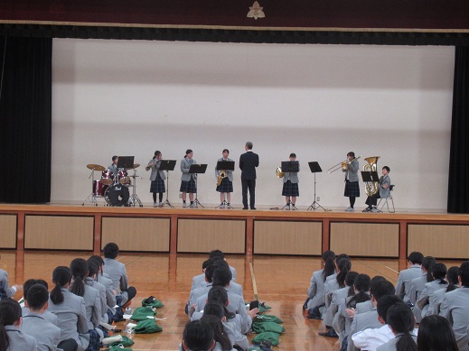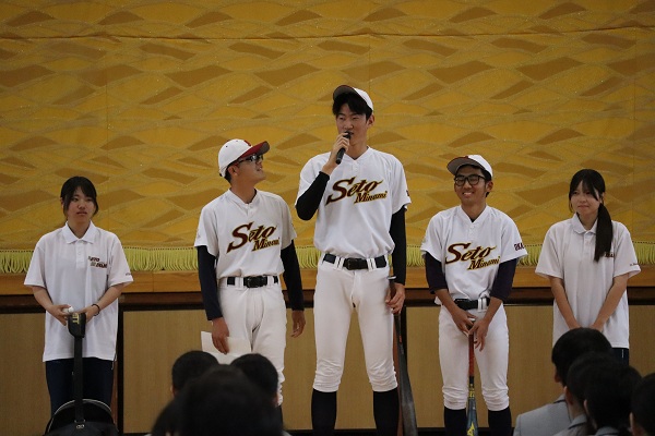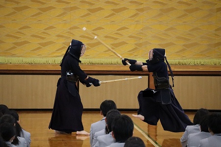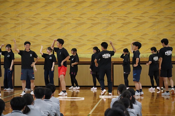 4月13日(月)5・6時間目に部活動紹介を行いました。各部・同好会の上級生から1年生に向けて、工夫を凝らした紹介が見られ、新入生は興味津々でした。4月21日までが部活動体験期間です。しっかり見学し、自分に合った部・同好会を見つけて取り組むことを確認しました。1年生が活躍する日が楽しみです 。