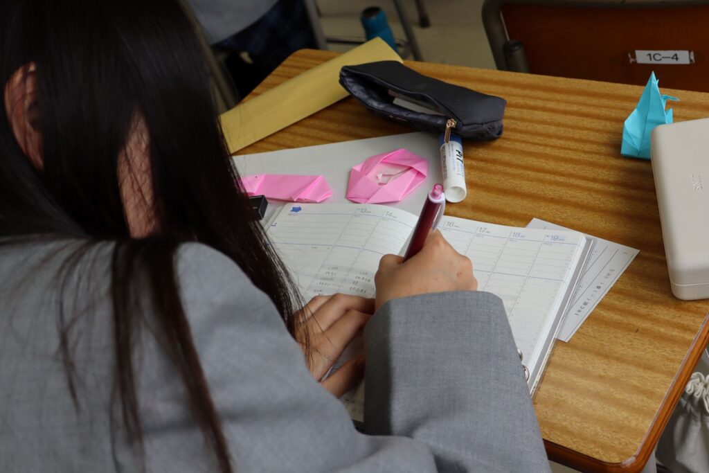 今日は手帳の使い方を動画を見ながら学びました。瀬戸南の火曜日6限後15分は