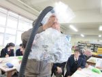 11月11日(月)。今日は「食品製造」の授業で柿の渋抜きの実験を行いました。渋柿にはタンニンという成分が含まれており、炭酸ガス(ドライアイス)を用いて「水溶性タンニン」を「不溶性タンニン」に変化させ、シブを感じなくさせる方法です。本校で収穫した愛宕柿を袋に詰め、ドライアイスを投入して空気を抜きました。10日後にはシブが抜ける予定です。