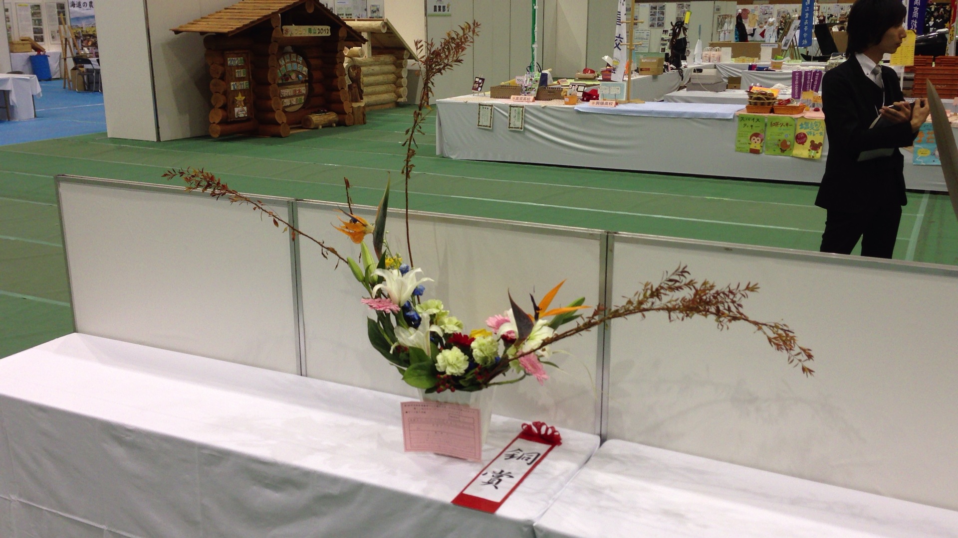 ②園芸科学科 フラワーアレンジメント競技(全国大会)で銅賞受賞! 2012年11月10日 setomina01 11月10日、商大附属高校で行われたさんフェア岡山2012フラワーアレンジメント競技会(全国大会)に出場した瀬戸南高校園芸科学科3年生(草花類型)の飯田裕加里さん(桜ヶ丘中出身)が、銅賞(3位)を受賞しました。作品タイトルは、「輪」で人との人との繋がりや支え合うことへの感謝の思いを表現したそうです。おめでとうございます。