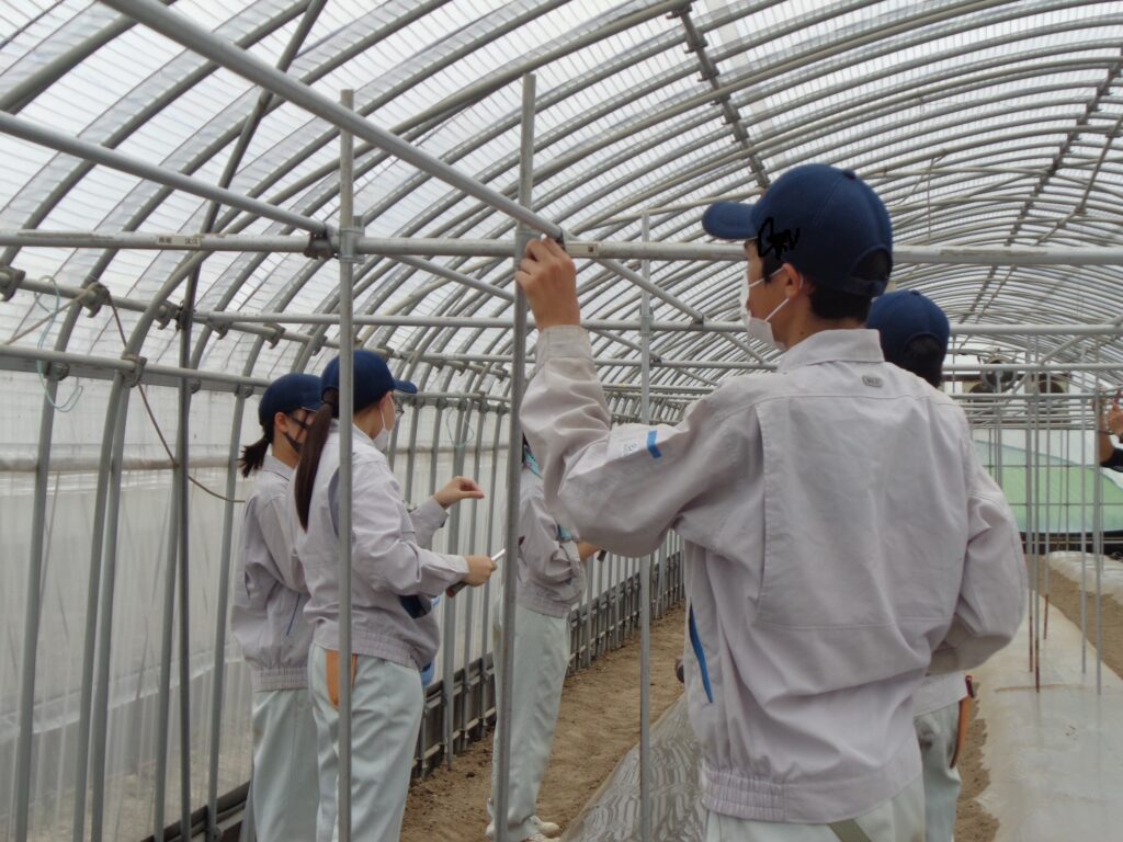 ②園芸科学科 野菜だよりVol.83 秋作キュウリ栽培準備2 2022年8月28日 setomina01 8月24日。 2年生の「総合実習」の授業で、秋作キュウリ栽培の誘引用支柱パイプを準備しました。1学期にも大玉トマトやナス・ピーマンで利用したので、スムーズに実習を行うことができました。