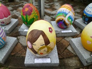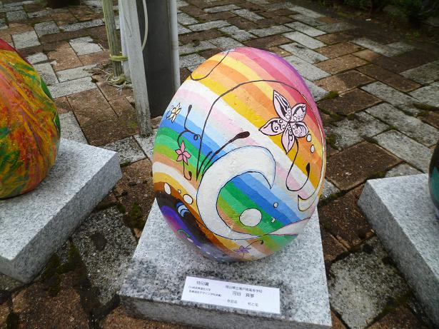 ③生活デザイン科 幸せのエッグデザインコンテストで優秀賞・特別賞受賞! 2013年10月20日 setomina01 10月20日、美咲町主催「幸せのエッグデザインコンテスト」の表彰式が「たまごまつり本部会場(美咲町)」で行われました。「世界にひとつ、私だけのたまご」をテーマに小中高校生を対象に1000点を超える応募作品の中から選ばれた作品は、川崎医療福祉大学医療福祉デザイン学科の学生によりレンガでできた「たまご型オブジェ」(30cm×23cm)にデザインを描かれて、美咲町内の主要な観光スポット等に展示されます。生活デザイン科3年の島田あさこさん(高陽中出身)の作品「タイトル:愛」(写真 上)が優秀賞を、同じく生活デザイン科3年の河田真夢さん(高島中出身)の作品「タイトル:虹と花」(写真 中)が川崎医療福祉大学特別賞を受賞しました。おめでとうございます!