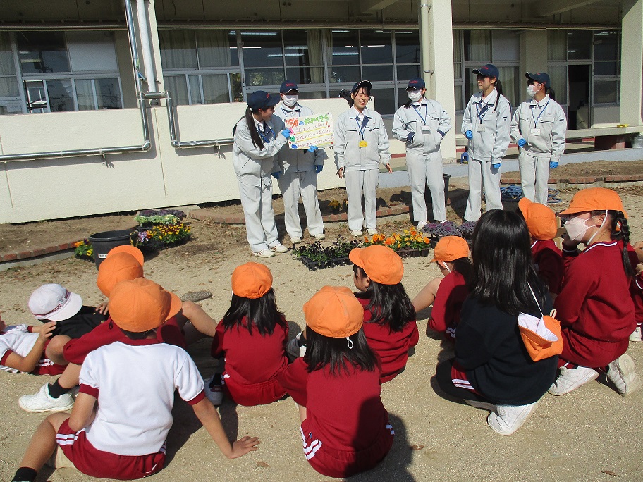 ②園芸科学科 草花だより51話「江西小学校交流」 2023年11月27日 setomina01 11月22日。草花類型3年生が、近隣の小学校と交流を行いました。小学校へ出向き、花壇と鉢に花を植えました。初めに注意点や植え方などを説明し、移植ごてを持って花を植えました。1時間ほどでしたが、楽しく交流が出来ました。