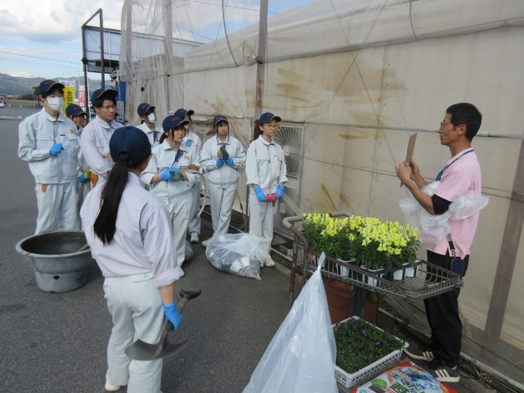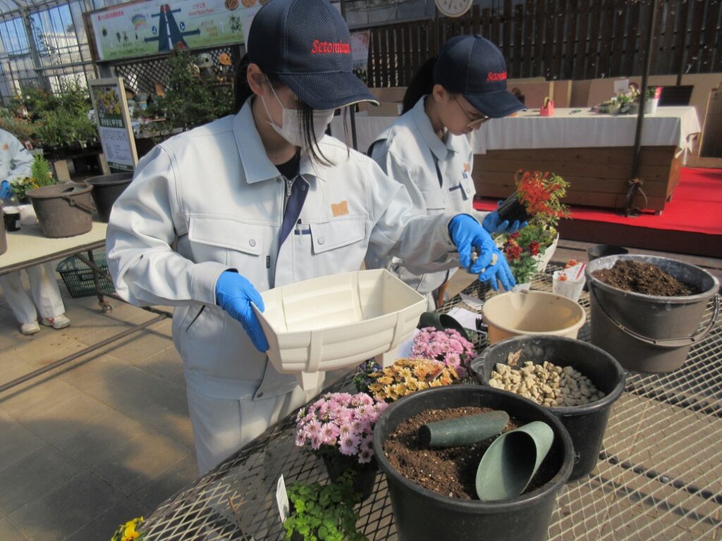 11月6日(木)。園芸科学科フラワーベジタブルコース2年生が、農マル園芸吉備路農園を訪れ、寄せ植え甲子園に参加しました。11月8日から投票ができるので、立ち寄られた際はぜひ投票してください。