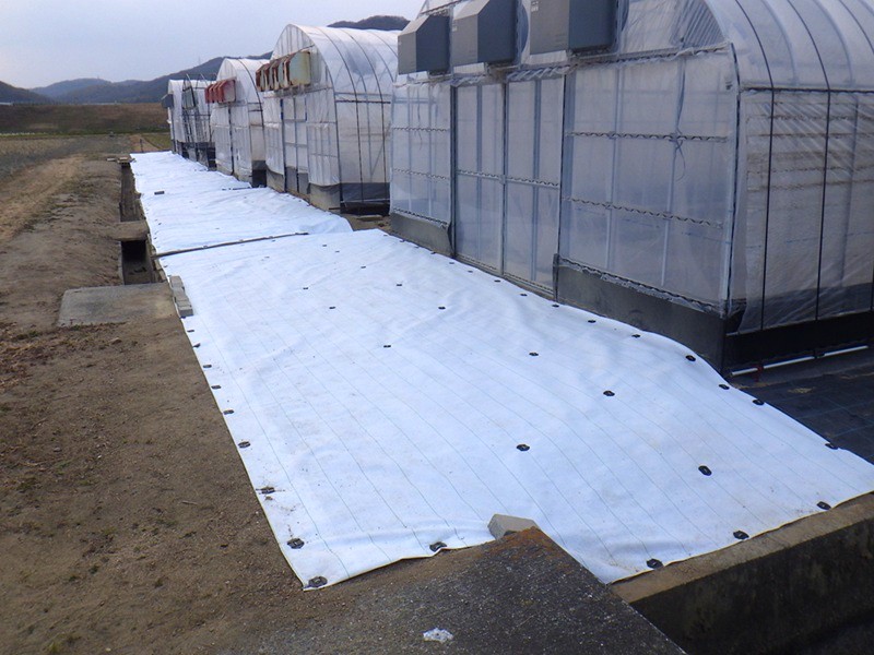 2月2日(月)。園芸科学科1年生「農業と環境」の授業で、1年生39名が、防草シートの設置をしました。前回の授業で整地した場所に班に分かれて防草シート張りを行いました。風が強く、シートが弛まないように張るのは苦戦しましたが、班で協力して無事に終えることができました。