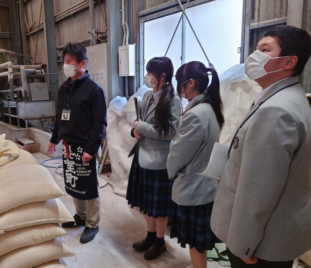 2月20日。モーモークラブ4名は室町酒造へ和牛肉販売会の報告を行い、蔵元の見学をしました。