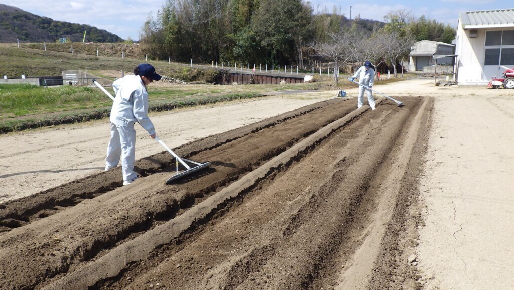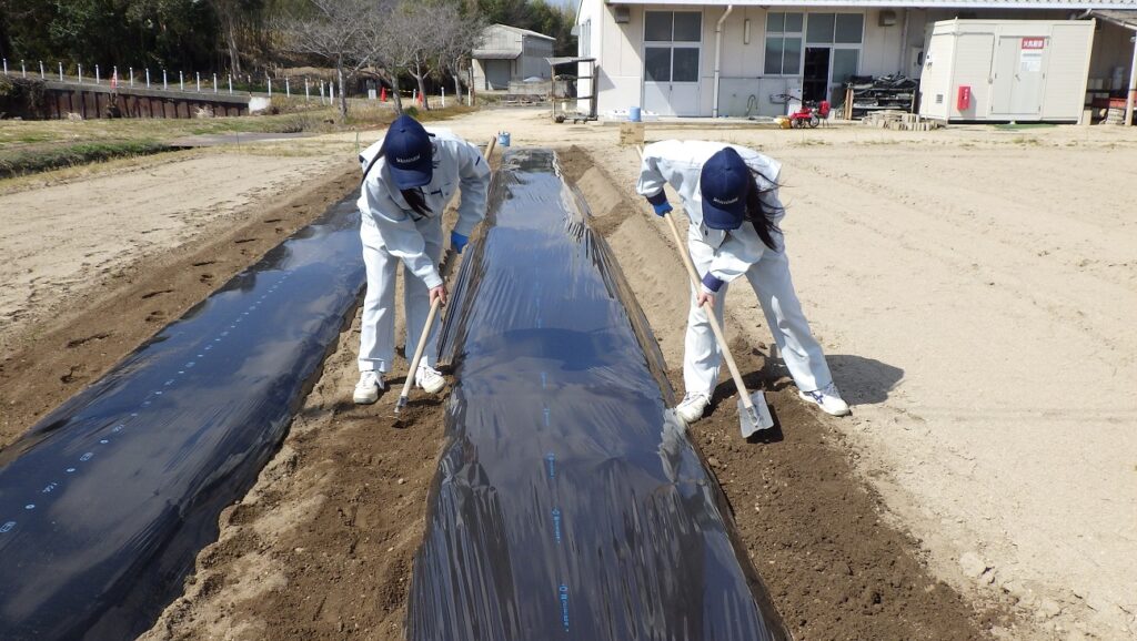 3月16日(月)。園芸科学科1年「この指とまれプロジェクト」TEAM「春空」2回目の活動は春キャベツを植える畑の準備をしました。週末が雨予報のため畝立てができないので晴れている日に実施しました。作業量が増え、時間もかかり大変でしたが、一つ一つの作業が楽しくなり達成感も得ることができました。次回はいよいよ苗の植え付けです。全力で頑張ります!