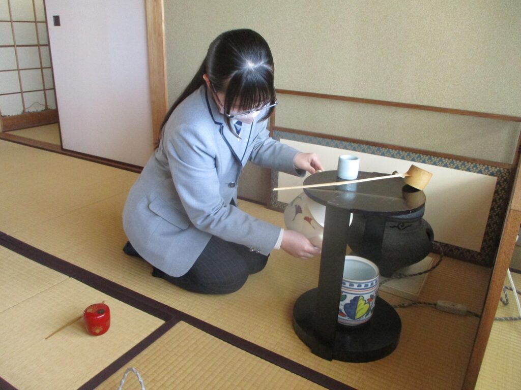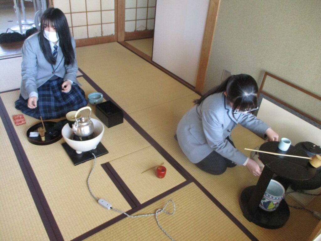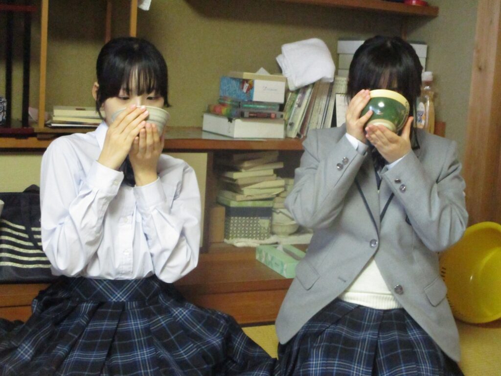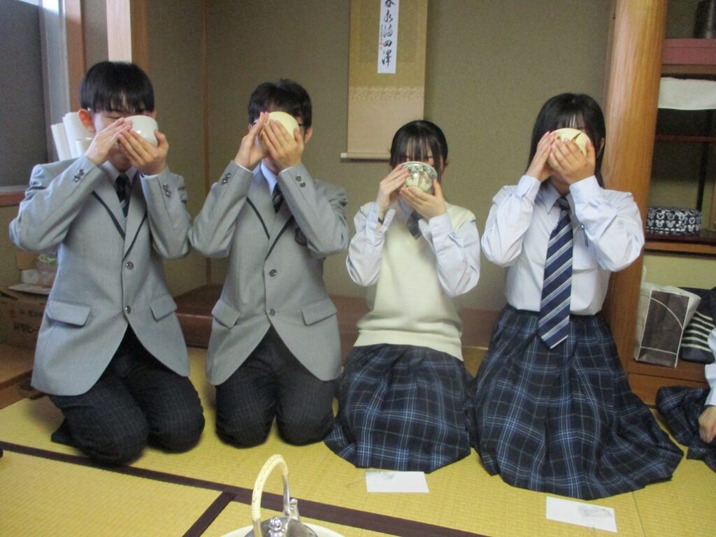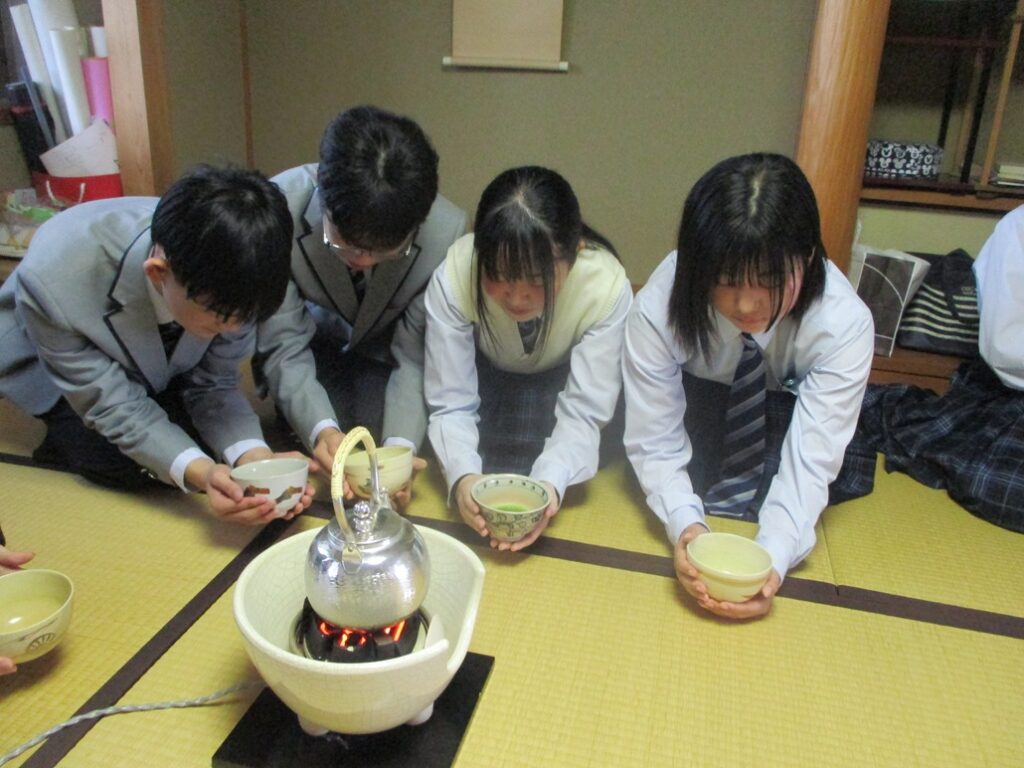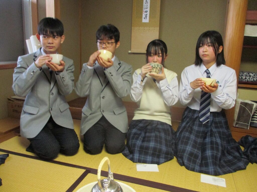 4月。校内で各部の部活動体験が始まり茶道部にも多くの生徒が体験に来ました。抹茶を飲んで「美味しかった」「一つ一つの動作がきちっとされている」といった感想がありました。